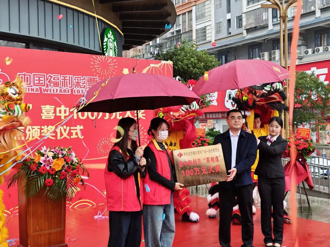 2026年2月28日下午,揭阳市福彩中心在君和广场举行站点颁奖仪式。揭阳市福利彩票发行中心主任黄树龙,揭东区民政局副局长苏霞参加颁奖仪式,共同为中奖站点授予荣誉牌匾并颁发奖励金,对站点为福利彩票事业发展做出的贡献表示肯定。
