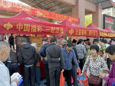 3月17日上午,2026年“广东社工周”宣传活动在梅州市华侨城广场开展,本次活动以“情系民生 社工同行”为主题,梅州福彩积极参与,以“福彩 + 社工”模式开展公益宣传,将福彩发行宗旨、公益金筹集、分配及使用情况等内容与社工一线服务深度融合,传播“公益、慈善、健康、快乐、创新”的福彩文化。