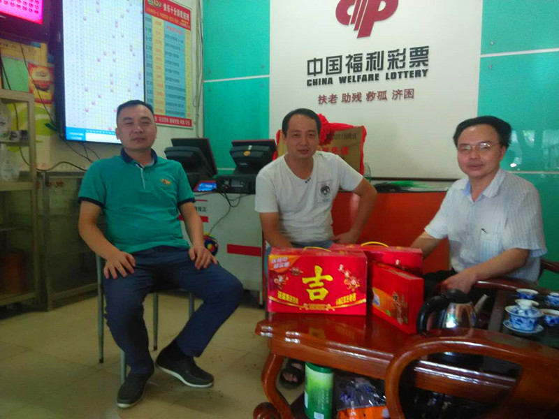 2016年7月22日,正值大暑,揭阳多地迎来“烧烤模式”,福彩投注站一线销售人员仍然坚持在自己的岗位上。为感谢福彩一线销售人员的辛勤劳动,揭阳福彩开展“夏日送清凉”慰问活动,由揭阳市福彩中心主任卢树华带领的慰问组,带着中心的关怀与问候,来到市区多家投注站及中福在线厅慰问一线销售人员,亲手为销售员送上王老吉饮料和茶叶,也送去了丝丝凉意。
