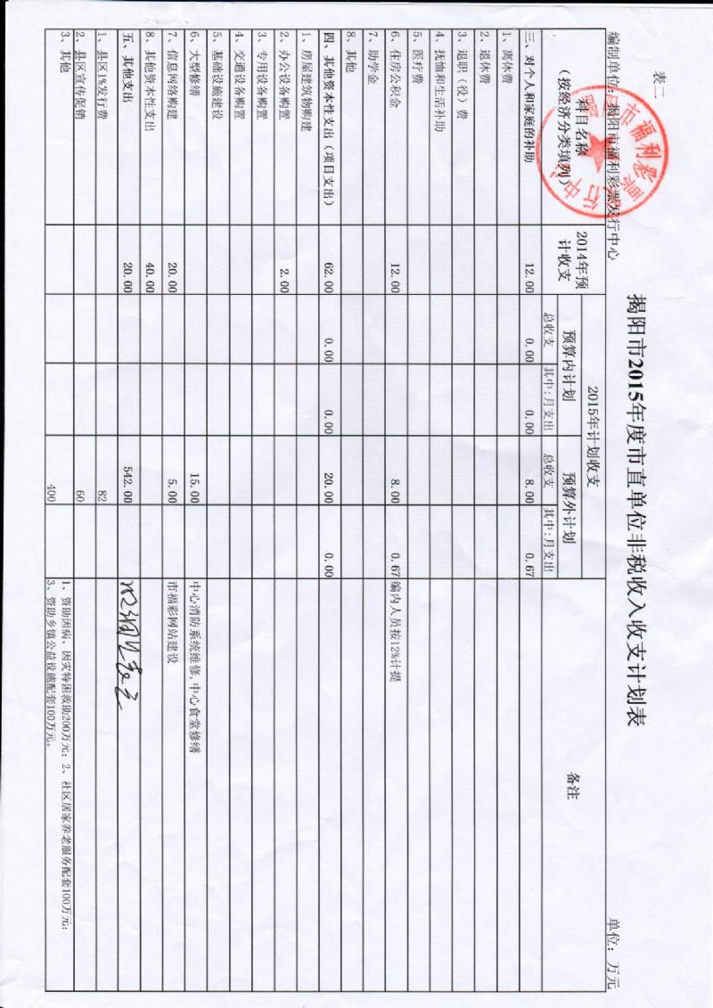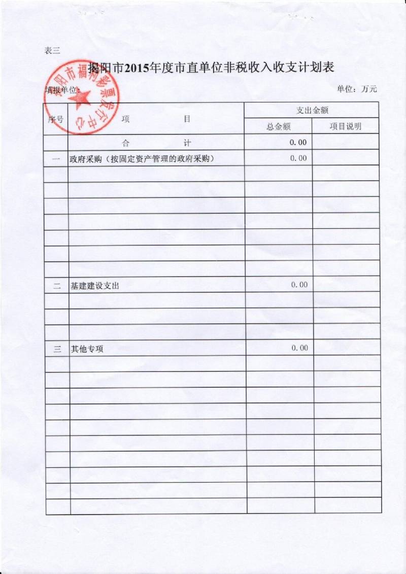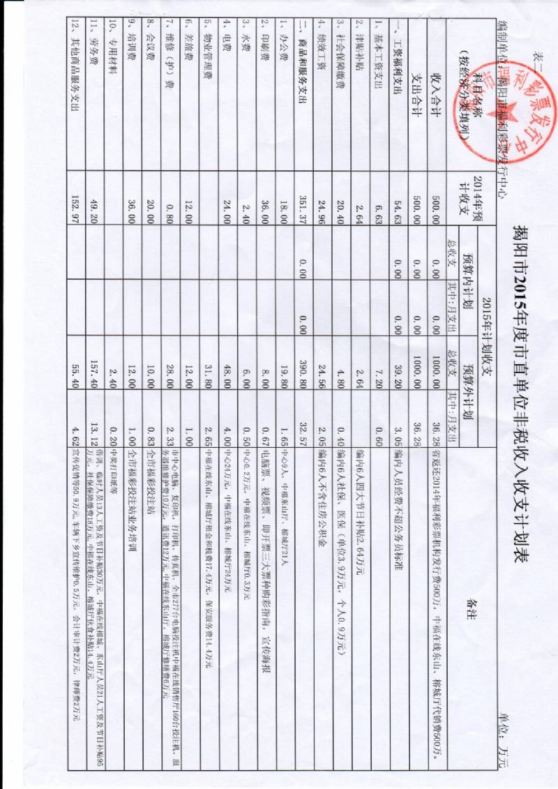 揭阳市福利彩票发行中心2015年部门预算补公开资料