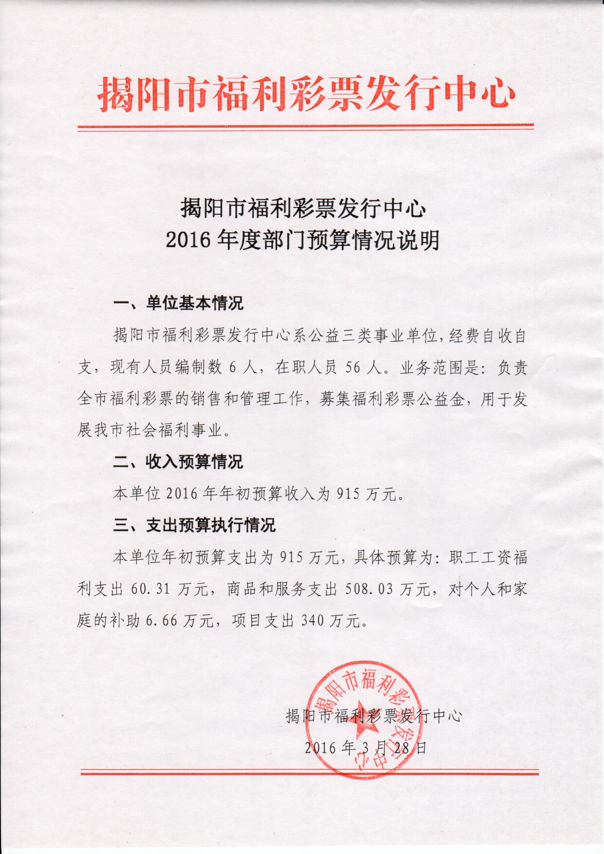 揭阳市福利彩票发行中心2016年度部门预算情况说明