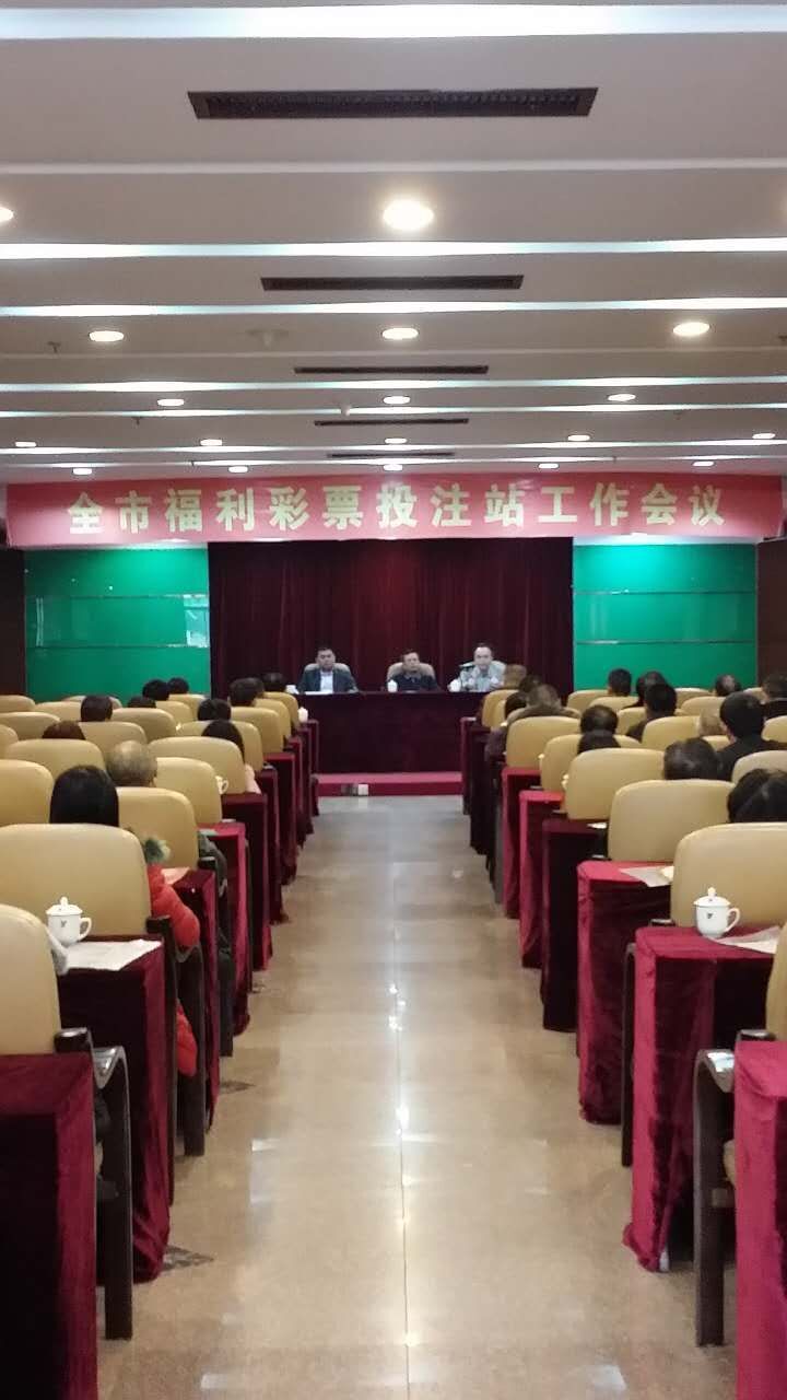 2017年1月21日上午,揭阳市福彩中心召开全市福利彩票投注站工作会议。揭阳市民政局党组成员、纪检书记陈旭升、市福彩中心主任卢树华、市福彩中心干部职工、中福在线厅经理、各投注站负责人参加了会议。 会议由市福彩中心副主任黄树龙主持,市福彩中心卢树华主任总结了2016年福利彩票发行工作,并提出了2017年的工作思路。