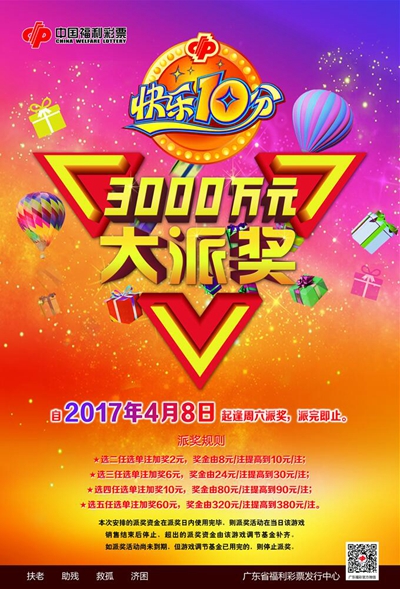 为进一步巩固中国福利彩票“快乐十分”游戏市场,回报广大彩民对福利彩票事业的热情支持,提升福彩品牌影响力,提高我省福利彩票销量,从4月8日起,对中国福利彩票“快乐十分”游戏部分玩法开展派奖活动。