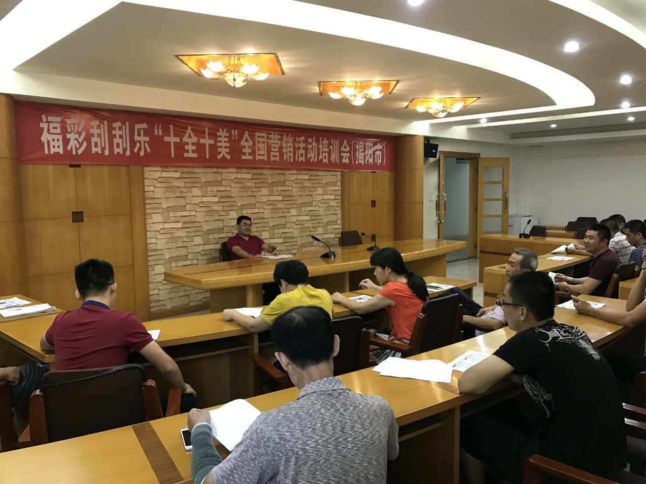 最后,揭阳市福彩中心卢树华主任鼓励大家积极做好刮刮乐营销宣传工作,全面深入了解和学习刮刮乐营销宣传活动的内容,全面配合开展好此次全国、全省的刮刮乐营销活动,服务好彩民,努力提升揭阳市刮刮乐的市场销售份额。