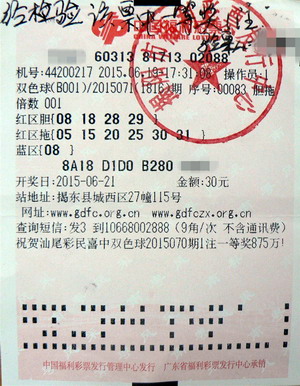 2015年6月24日一大早,大块大块的雨点落了下来,雨点落在泥地上,溅起一团团灰尘,一位身穿朱红色衣服的男士冒雨前往揭阳市福利彩票发行中心,他手持一张双色球彩票,经市福彩中心工作人员一询问,才得知他是第2015071期双色球一等奖532万元的得主——郑先生(化名),也是揭阳市今年的首个双色球一等奖中奖者。