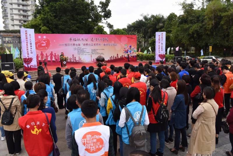 3月20日,由揭阳福彩公益金资助、揭阳市民政局主办、市社会工作服务机构联合会承办、的揭阳市第七届“岭南社工宣传周”活动启动仪式在市区青年文化广场隆重举行。揭阳市委政法委专职委员、市社工委专职副主任徐锦泉,市民政局党组成员、市社会组织管理局局长陈志平,团市委副书记林惠生,市社会工作服务机构联合会会长林巧周出席了活动。市政法委、市民政局有关科室负责人,各县(市、区)民政局分管社工建设和社会服务的局领导、业务股室负责人,市社工联成员单位代表,广东社工“双百计划”揭阳地区社工服务站代表,我市部分社工服务机构社工和志愿者代表近200人参加活动。