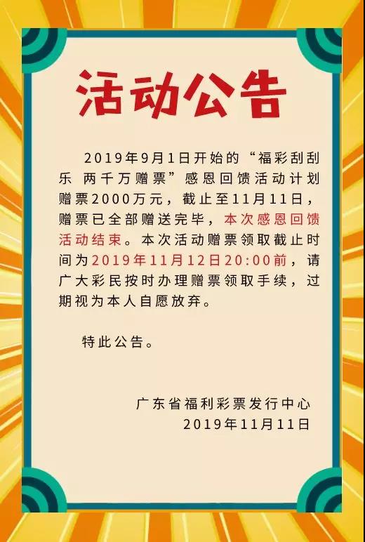关于“福彩刮刮乐 两千万赠票”感恩回馈活动结束的公告