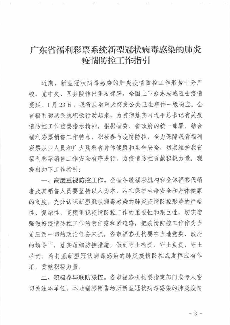 广东省福彩中心印发《广东省福利彩票系统新型冠状病毒感染的肺炎疫情防控工作指引》