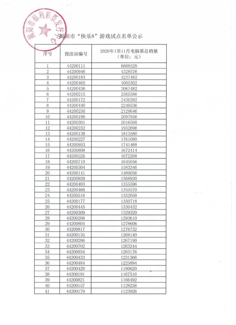 关于揭阳市福彩投注站第一批“快乐8” 游戏试点名单的公示