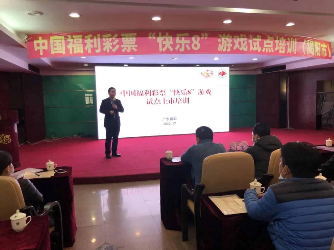 为做好中国福利彩票“快乐8”游戏试点上市前期筹备工作,确保新游戏试点上市工作在我市顺利进行,根据省福彩中心工作部署,12月22日上午,揭阳市福彩中心在市区举办中国福利彩票“快乐8”游戏试点上市培训班,广东省福彩中心总工程师孟海平、市场三部部长刘瑜峰现场培训授课,就福彩“快乐8”游戏规则和特点、投注技巧和策略、提升彩民购彩体验等方面进行了详细讲解。市福彩中心负责人杨文波在会议上作动员讲话。市福彩中心工作人员及投注站销售人员共160余人参加了培训。