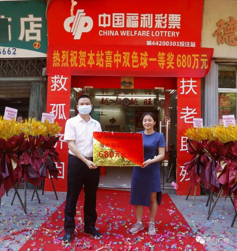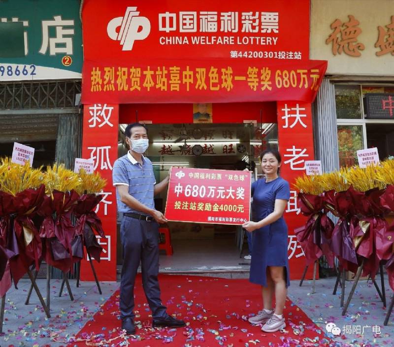 铺上红地毯 支起彩虹门 挂起红横幅“热烈祝贺我市彩民喜中双色球680万元大奖”今天上午位于惠来县惠城镇塘边村商住楼一楼的福彩44200301投注站喜气洋洋揭阳市福利彩票发行中心为该投注站举行了颁奖仪式。