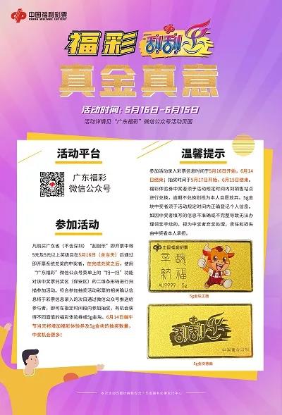 活动计划于5月16日开始登记信息,5月17日开始抽奖,其中6月14日为庆祝端午节,当天计划增加18,000张福彩体验券和2个5g金块进行抽奖。