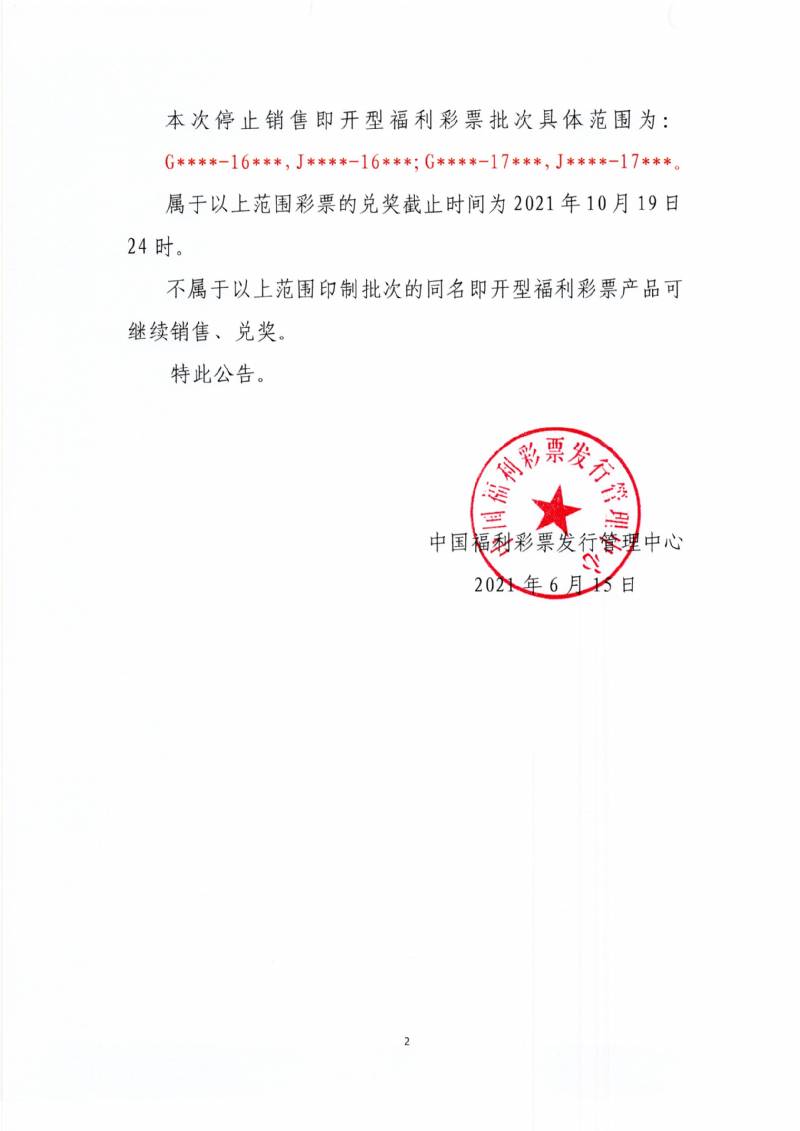 关于停止销售即开型福利彩票游戏中2020年印制的各批次彩票的公告
