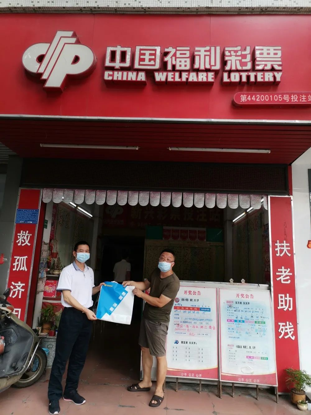 为推动党史学习教育走深走实,揭阳福彩坚持以人民为中心,积极推进“我为群众办实事”实践活动。8月20日,市民政局副局长杨子远在市福彩中心主任杨文波的陪同下,深入福利彩票销售一线,检查指导福利彩票销售场所防疫工作,为销售员送上防疫物资。