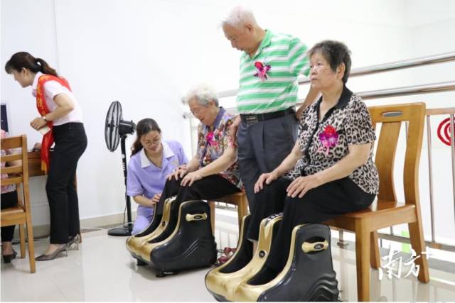 聚龙湾护理院还把养老服务延伸到了社区,在揭阳市榕城区设立了两家居家养老中心,为附近街区的老人提供健身活动场地和理疗按摩等服务。