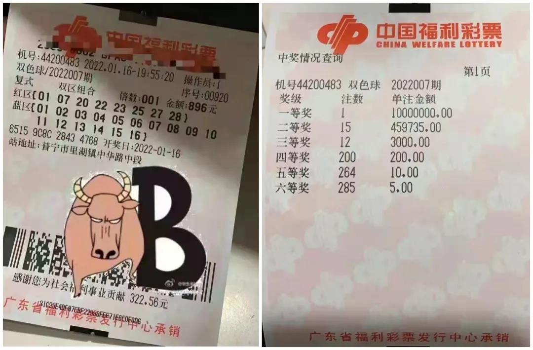 曾喜中双色球3703万元