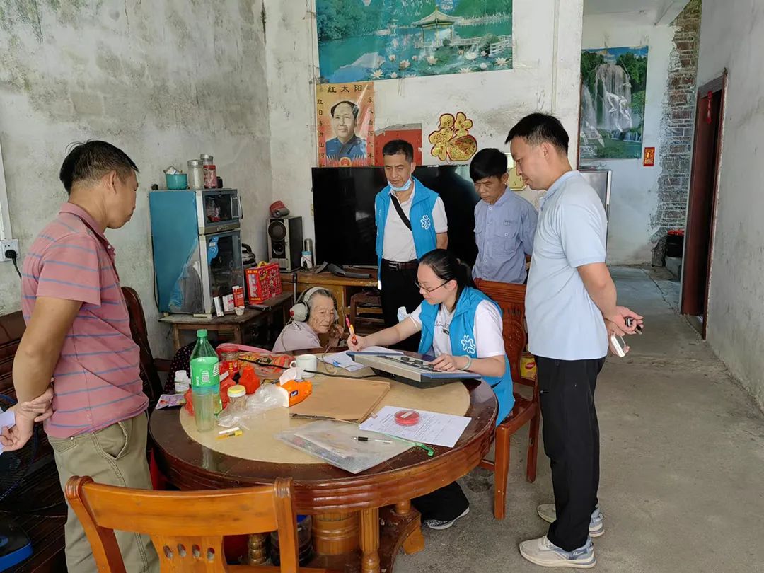 因为受助对象多数行动不便且项目开展期间广东高温暴晒,项目工作组一改以往通知受助对象到村委集中筛查的形式,在花都社工站工作人员的带领下,深入每户受助群众家中拜访、筛查,并根据具体需求进行详细记录。