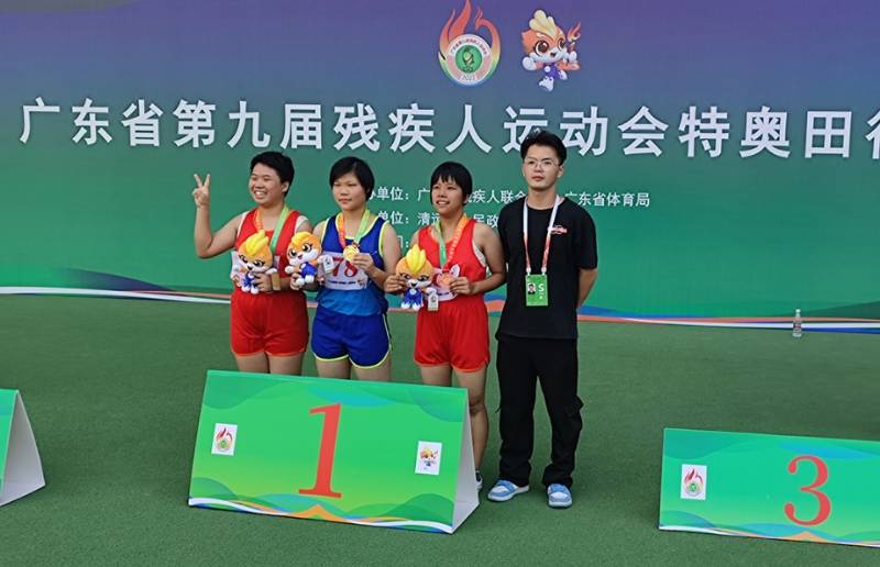 江雪晶(左二)在广东省第九届残疾人运动会接受颁奖