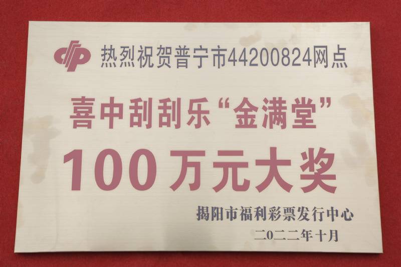 2022年10月14日,揭阳普宁市一彩民刮中刮刮乐“金满堂”100万元大奖,中奖点落在揭阳普宁市44200824福彩投注站,该投注站位于揭阳普宁市果陇综合市场内。