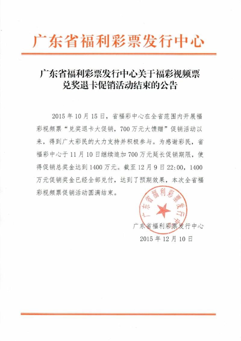 关于福彩视频票兑奖退卡促销活动结束的公告