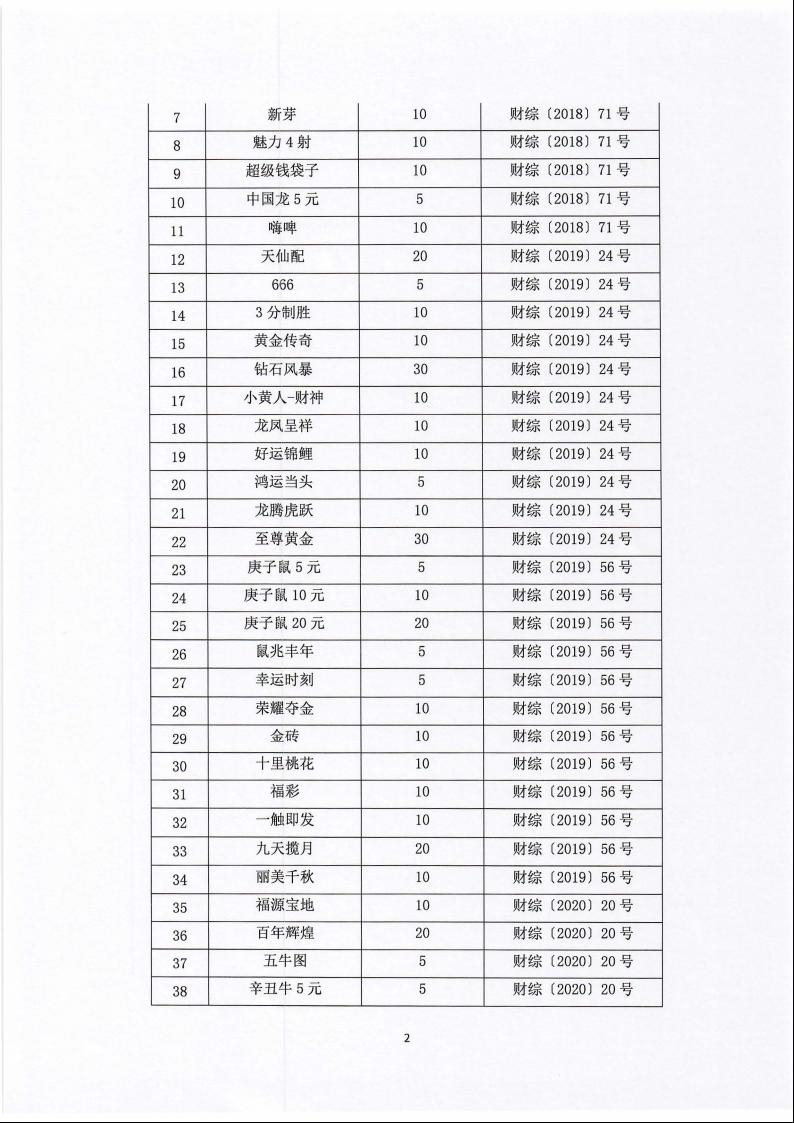 关于停止销售即开型福利彩票游戏中2020年印制的各批次彩票的公告