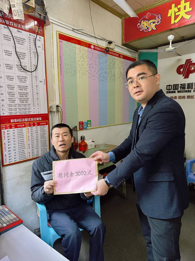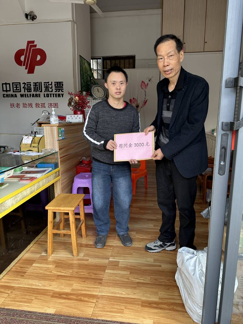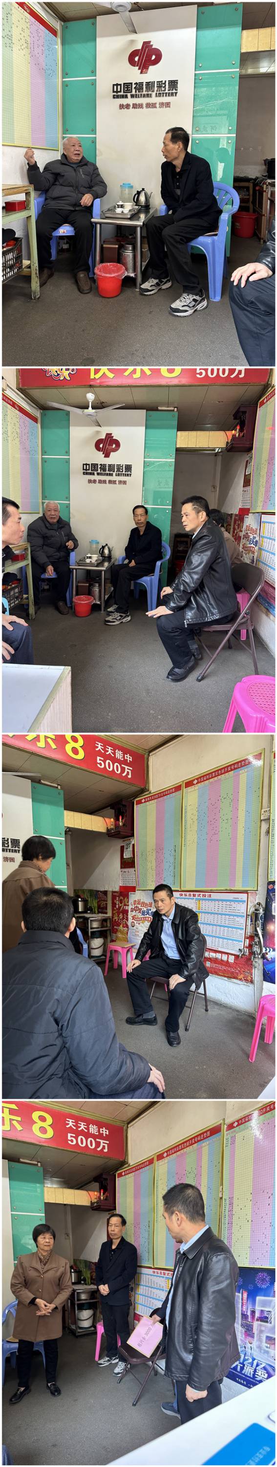 为贯彻落实广东省福利彩票发行中心关于进一步加强福利彩票销售管理工作指导意见,深入践行福利彩票“扶老、助残、救孤、济困”发行宗旨,体现福利彩票销售机构对生活困难福彩经营者的人文关怀,12月27日,揭阳市民政局副局长杨子远,在市福彩中心负责人杨文波、副主任黄树龙的陪同下,深入销售一线实地走访慰问因病因残导致生活困难的福利彩票销售站点经营者。同时对福利彩票销售场所开展消防安全检查。