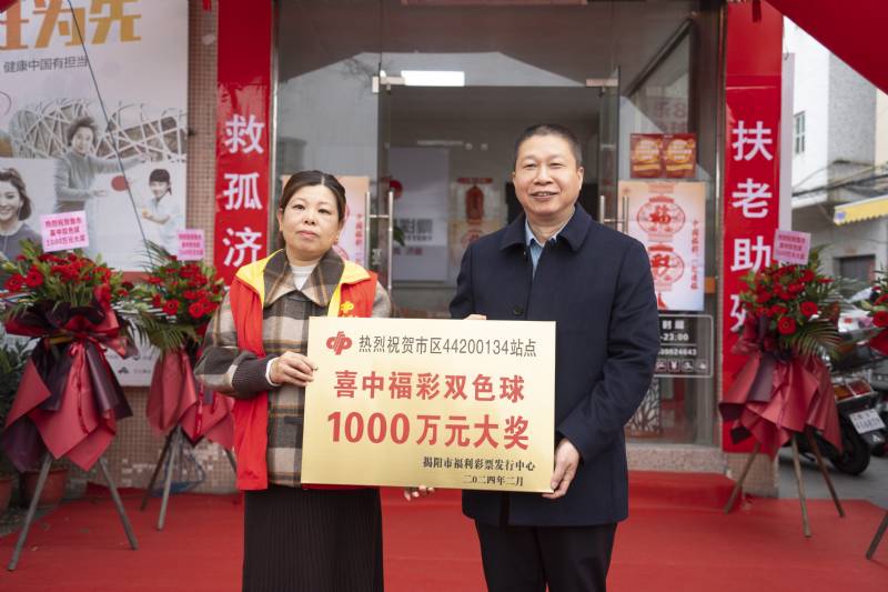 2024年2月25日(农历正月十六日),中国福利彩票“双色球”游戏第2024020期开奖,全国中出3注一等奖,其中揭阳市喜获1注,奖金1000万元!这是揭阳市今年首个双色球大奖。中奖站点为:44200134销售站点。地址位于揭阳市榕城区新兴街道下义村道10号。