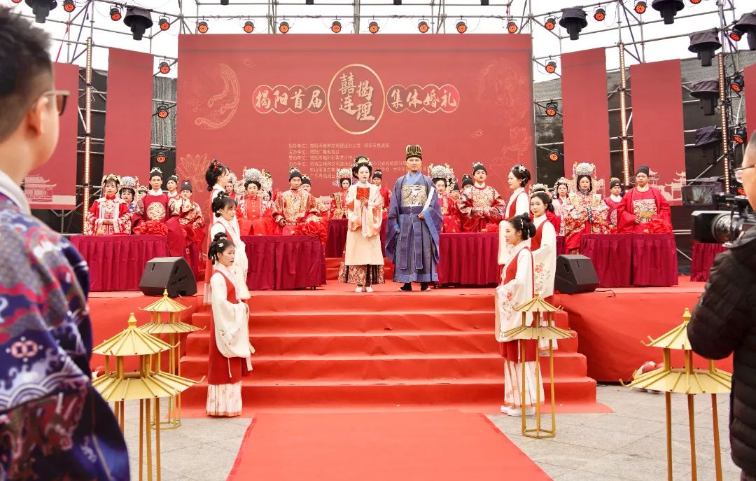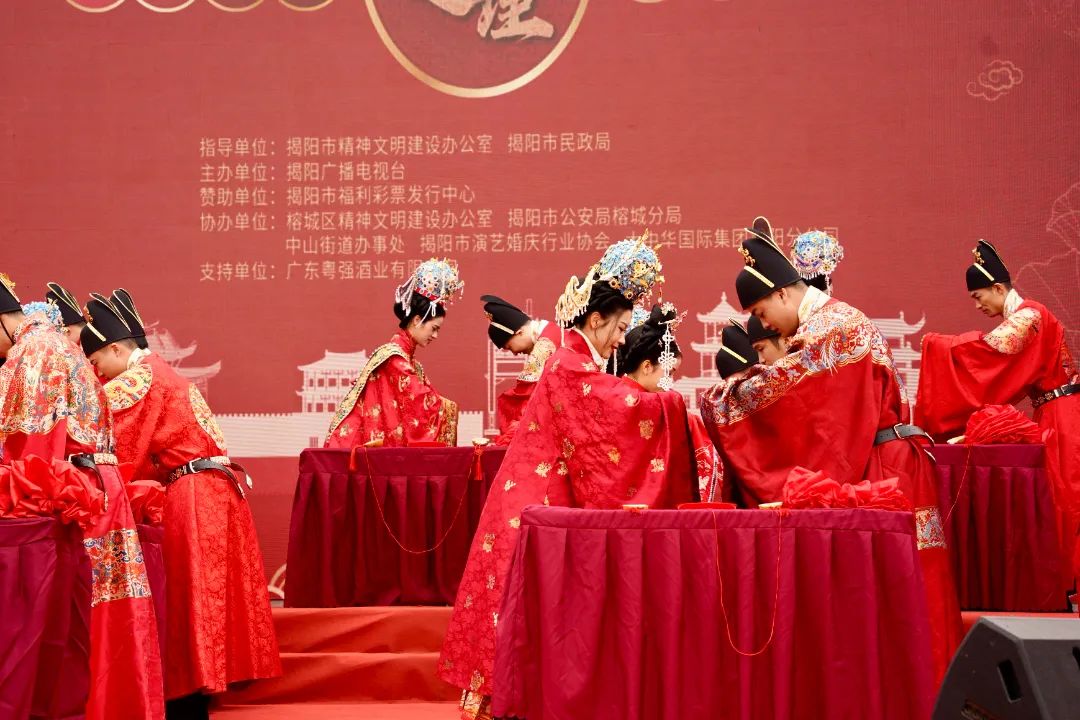 2025新年第一天,揭阳首届“囍・揭・连理” 集体婚礼在揭阳古城举行。15对新人身着中式传统婚服,尊传统礼制,行婚典之仪,演绎了一场文明、简约而不失庄重的新时代婚礼。