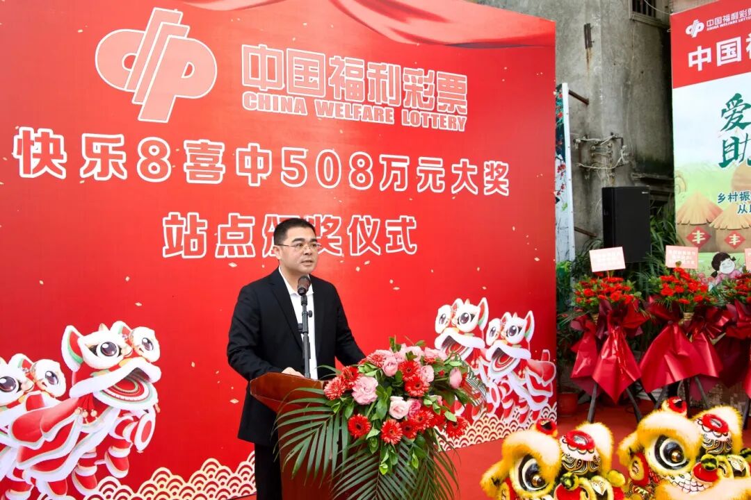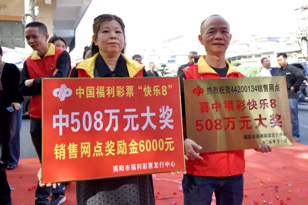 2025年11月18日,中国福利彩票:“快乐8” 2025308期,揭阳市榕城区44200134福利彩票销售站点中出“快乐8”玩法 508万元大奖。11月24日上午,揭阳市福利彩票发行中心在榕城区下义村44200134销售站点举行了站点颁奖仪式。